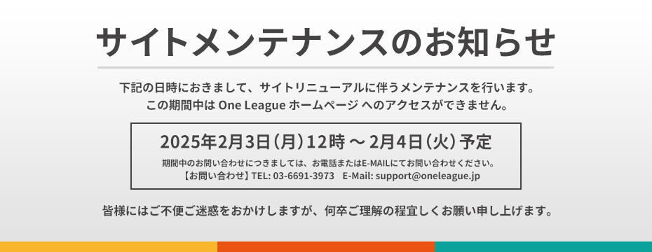 この期間中は One League ホームページ へのアクセスができません。